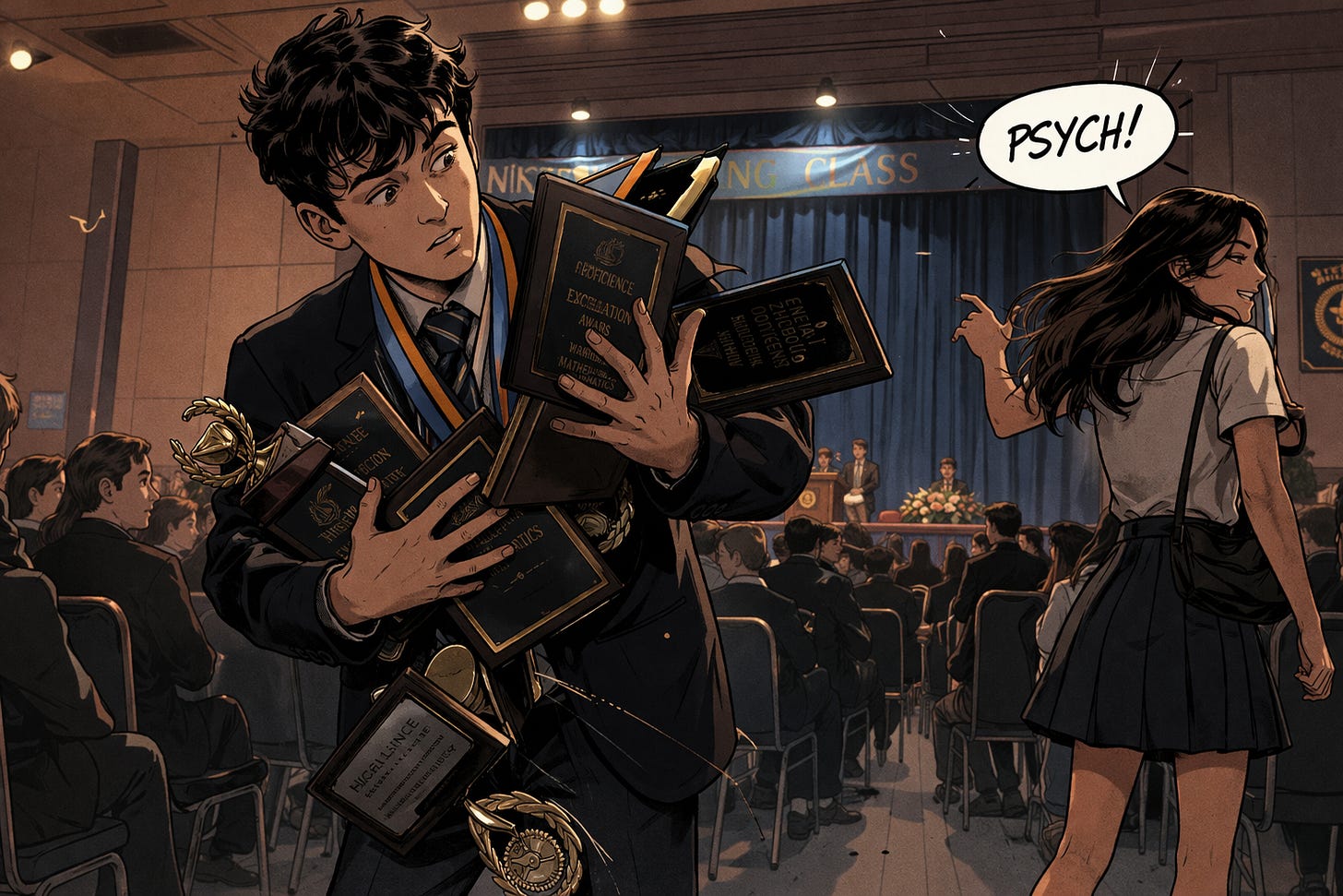 I was fifteen years old and I had nearly swept the board. Four or five awards for highest mark in a class. The general proficiency award. The excellence in education award. Two awards that overlapped in what they were recognizing, which says something about how institutions praise and nothing at all about what any of it felt like to carry. I was also one of two valedictorians who co-wrote the speech with an amicable classmate, though how fond I was of those years I would not know until long after. I got the school letter. I got the award for president of the boys’ athletic association. By the end of the ceremony I was holding more than I could physically manage, which is the kind of detail that would read as metaphor if it were not also literally true.